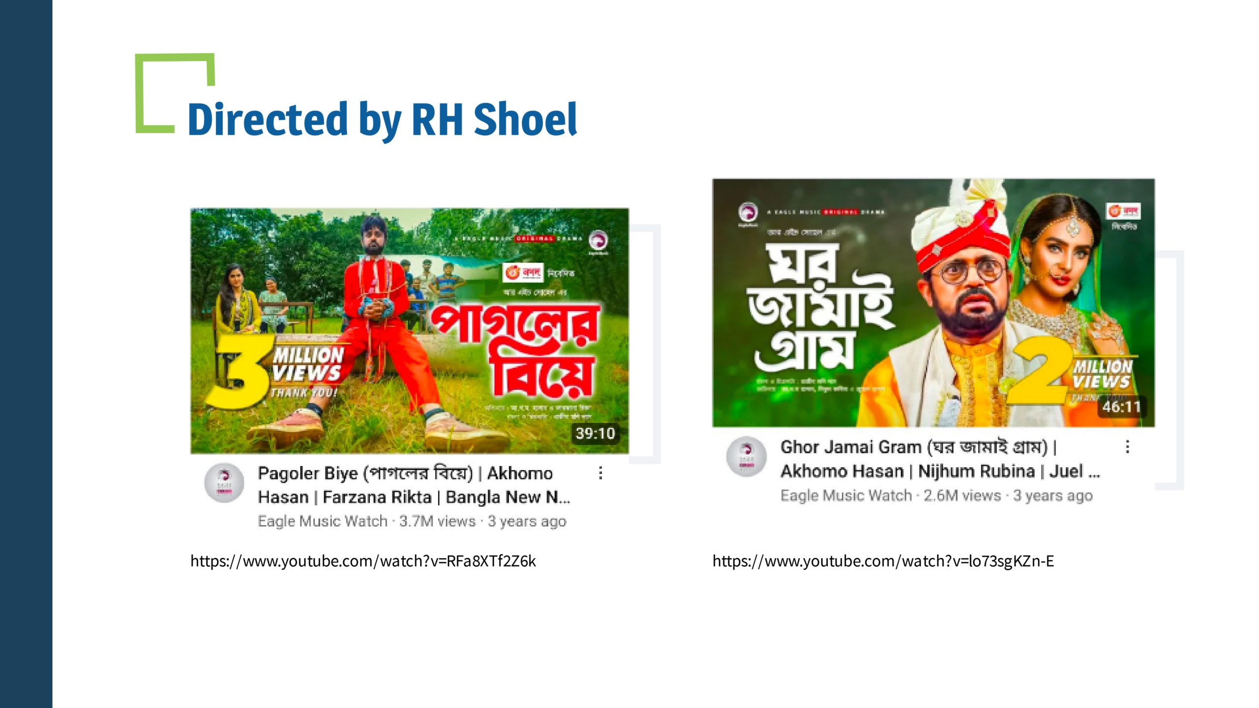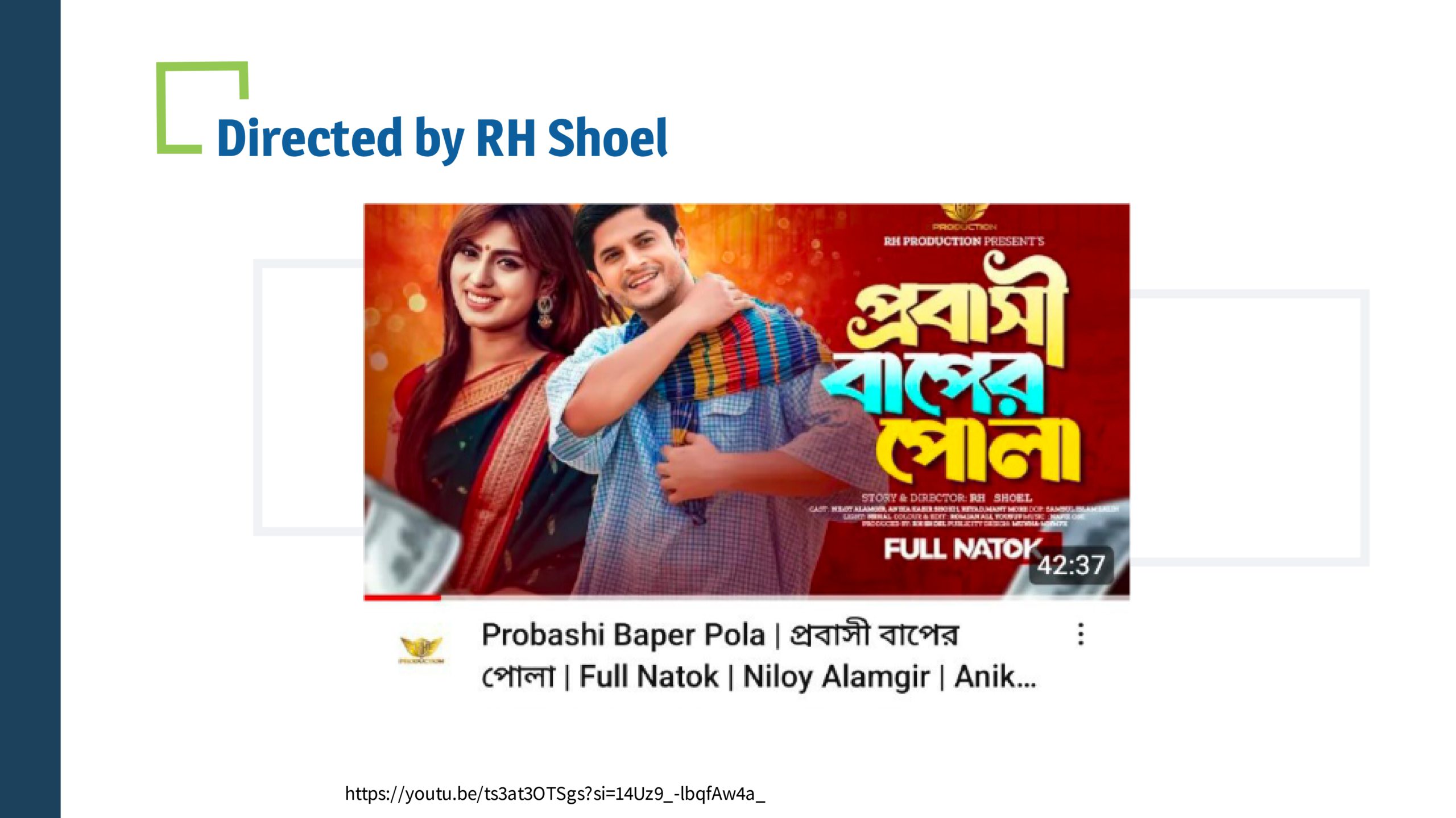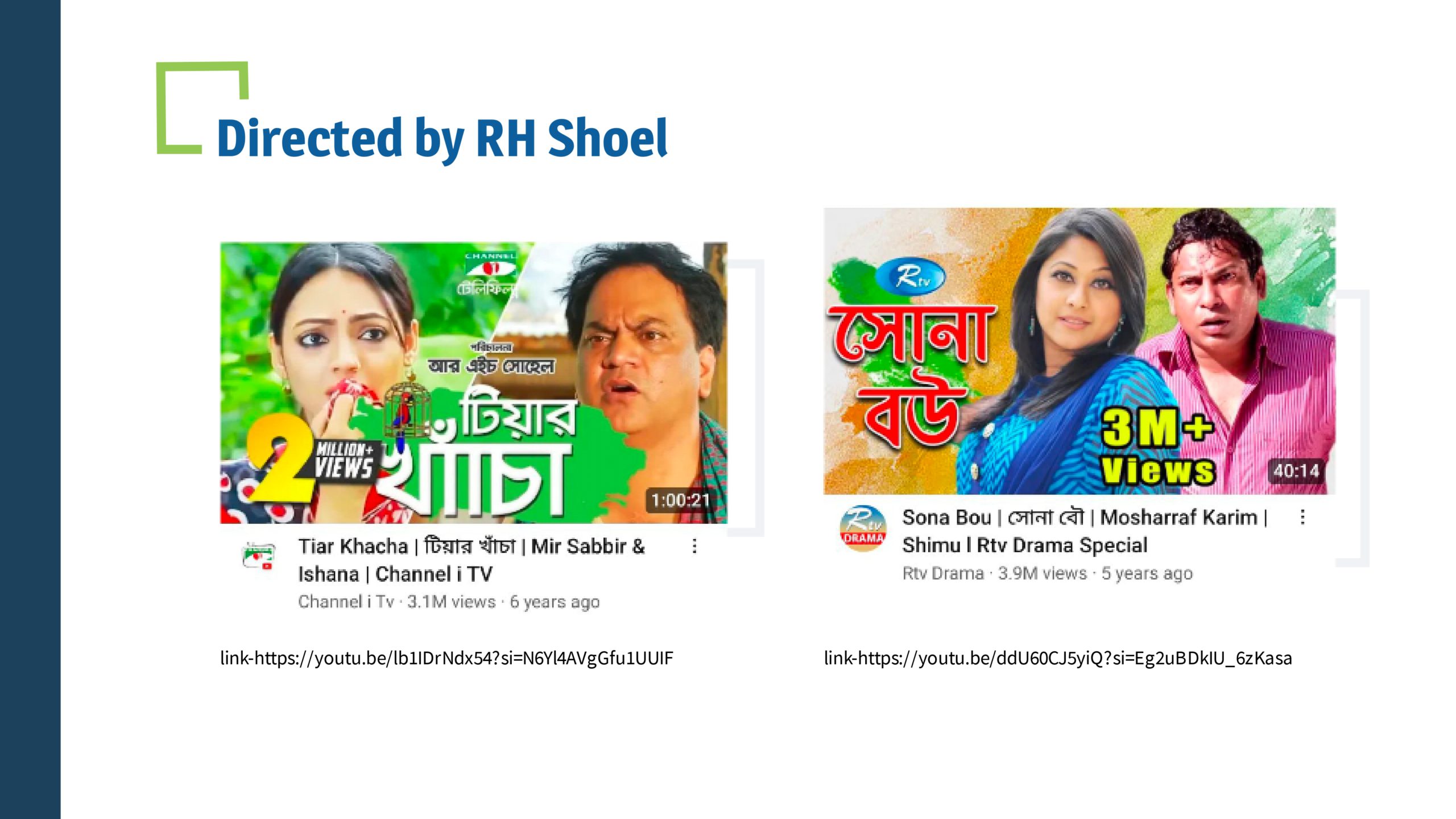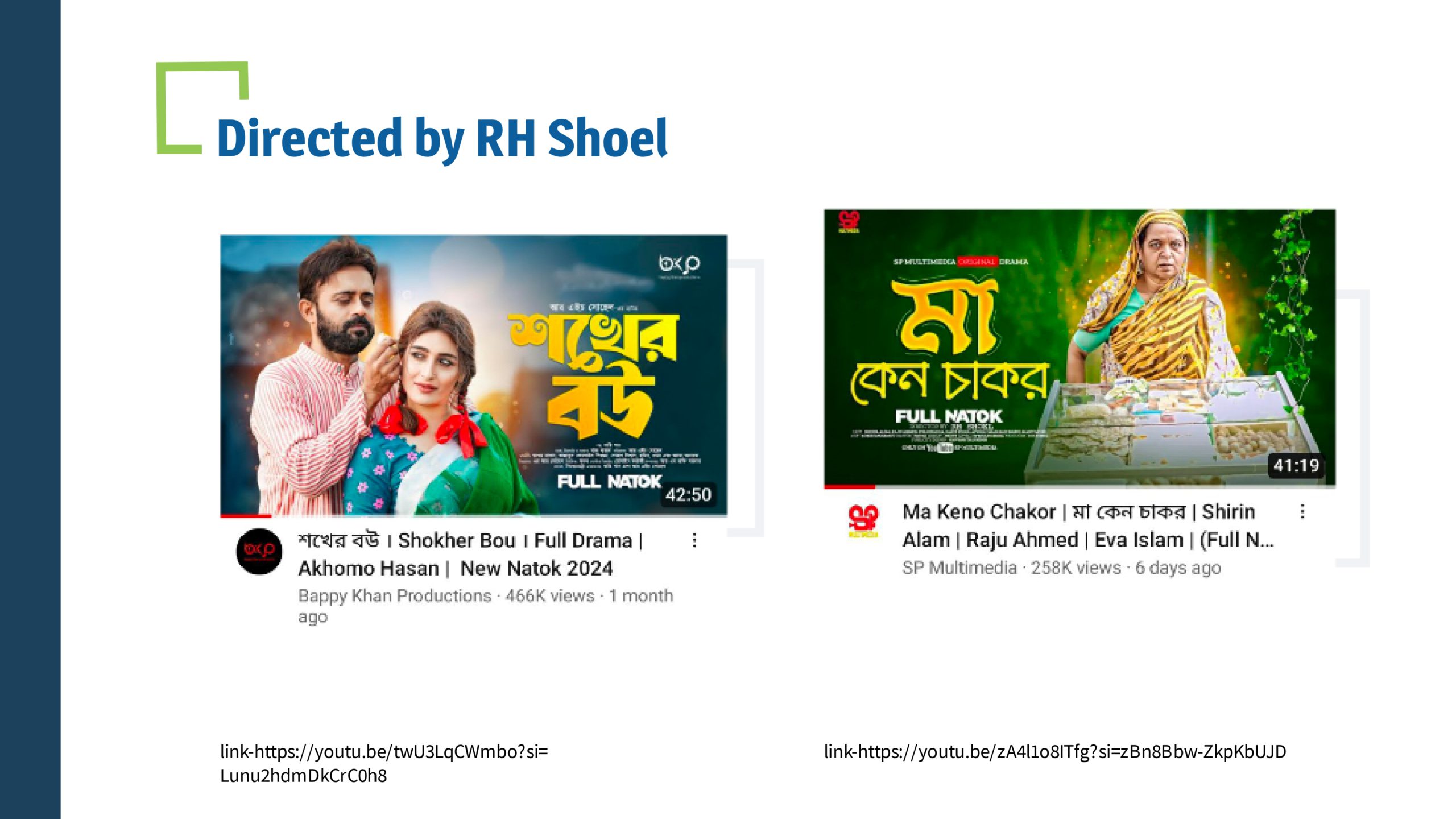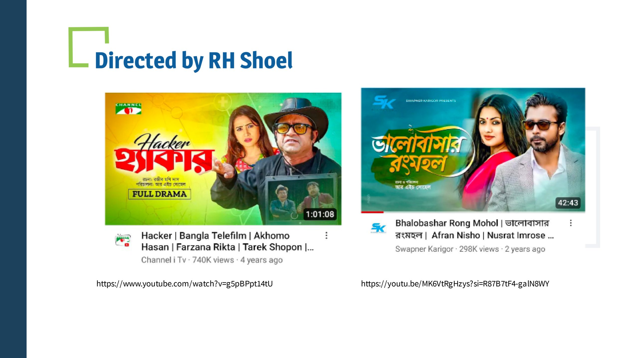 RH Shoel has been working in The Bangladesh television and film industry since 2001 as a director and producer. He began his journey with plays. To date, he has directed 200 dramas and produced 500 dramas and 10 movies. He wanted to be a film director since childhood. Apart from directing plays and films, he has also gained a significant reputation in the media industry as a producer.